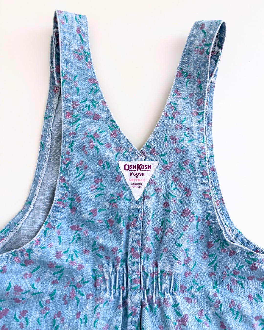 デニム生地にフローラル柄のOshKoshワンピース。