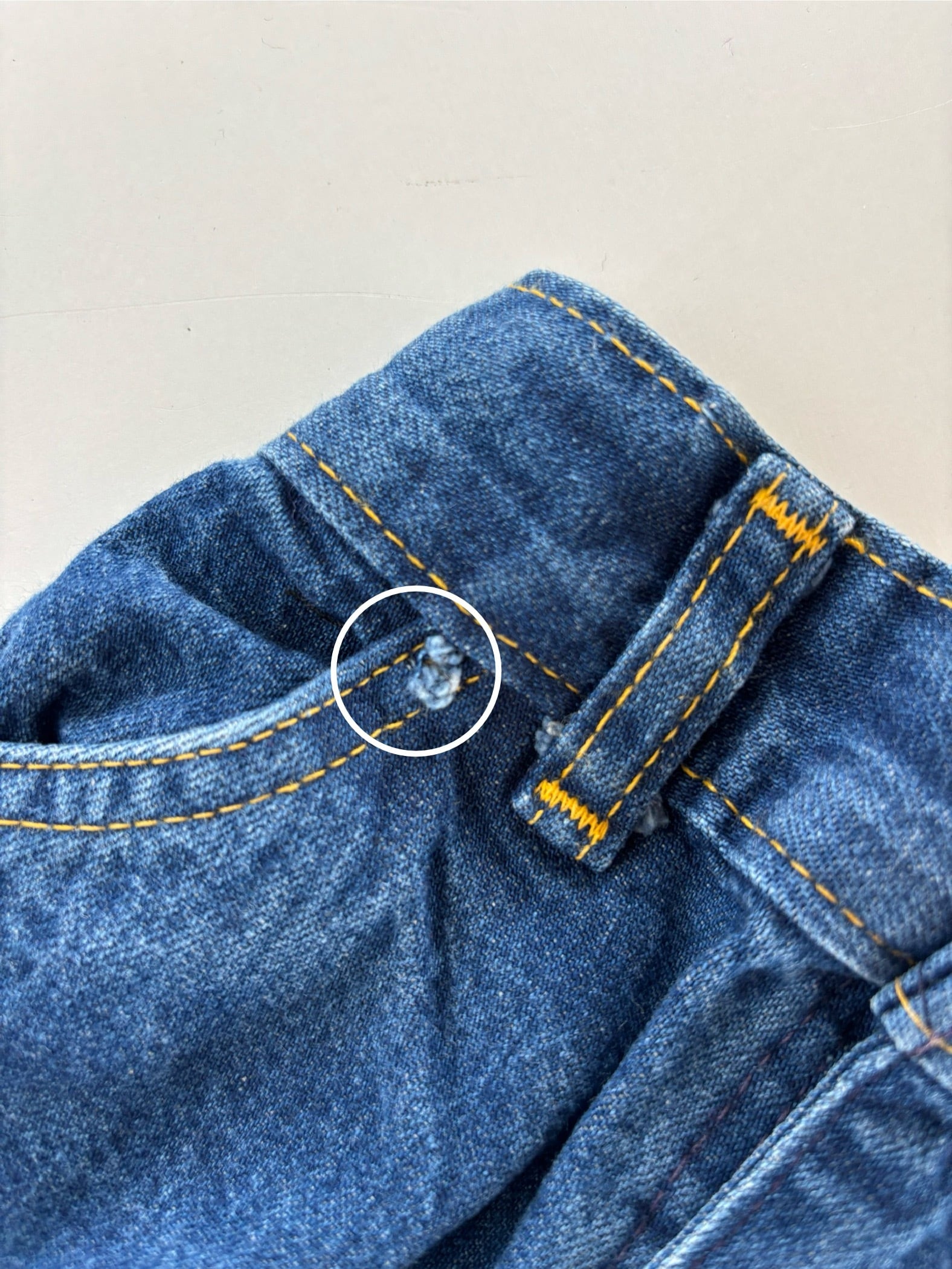 ・後ろポケットの縫代部分に小穴あり。