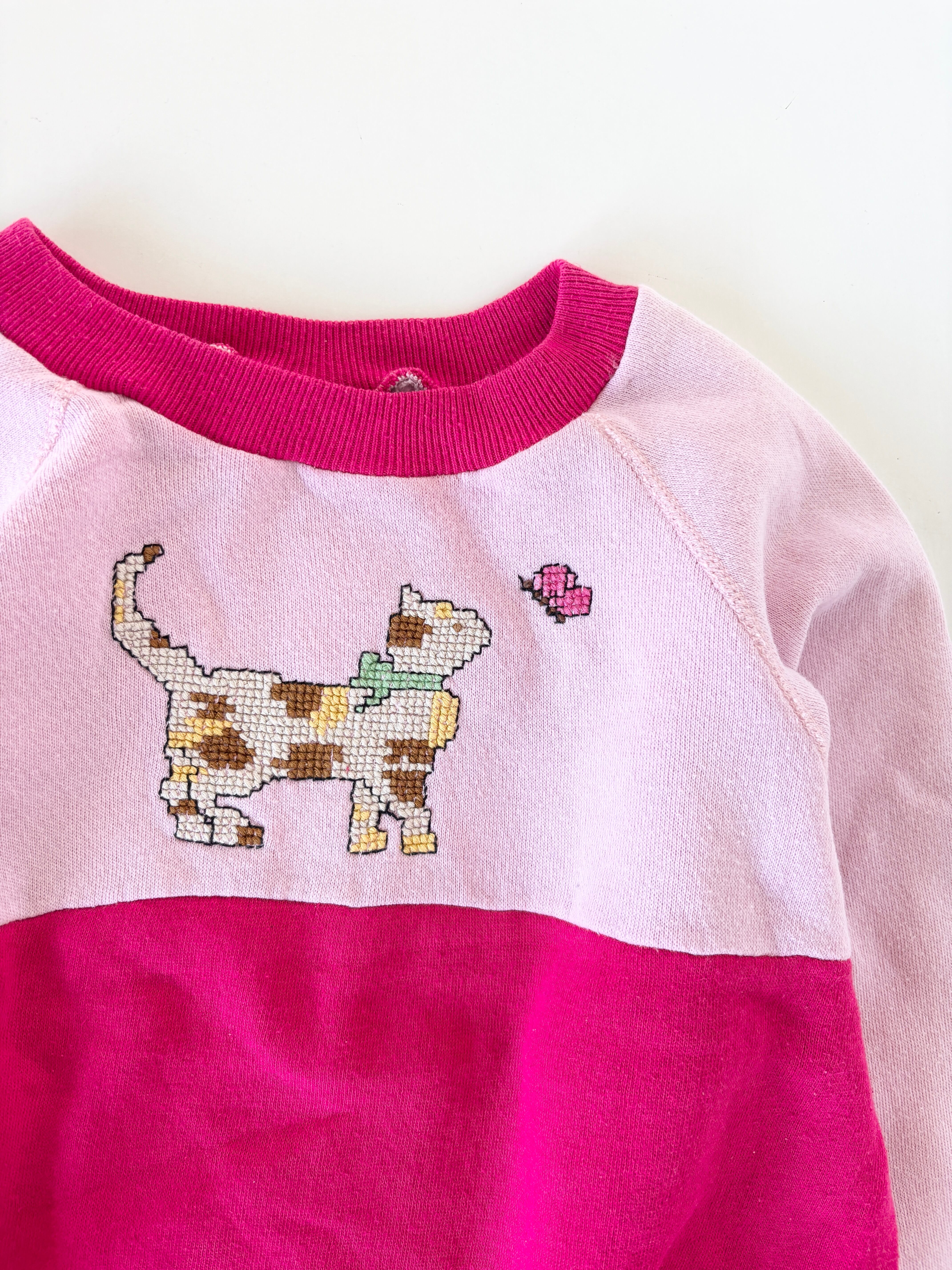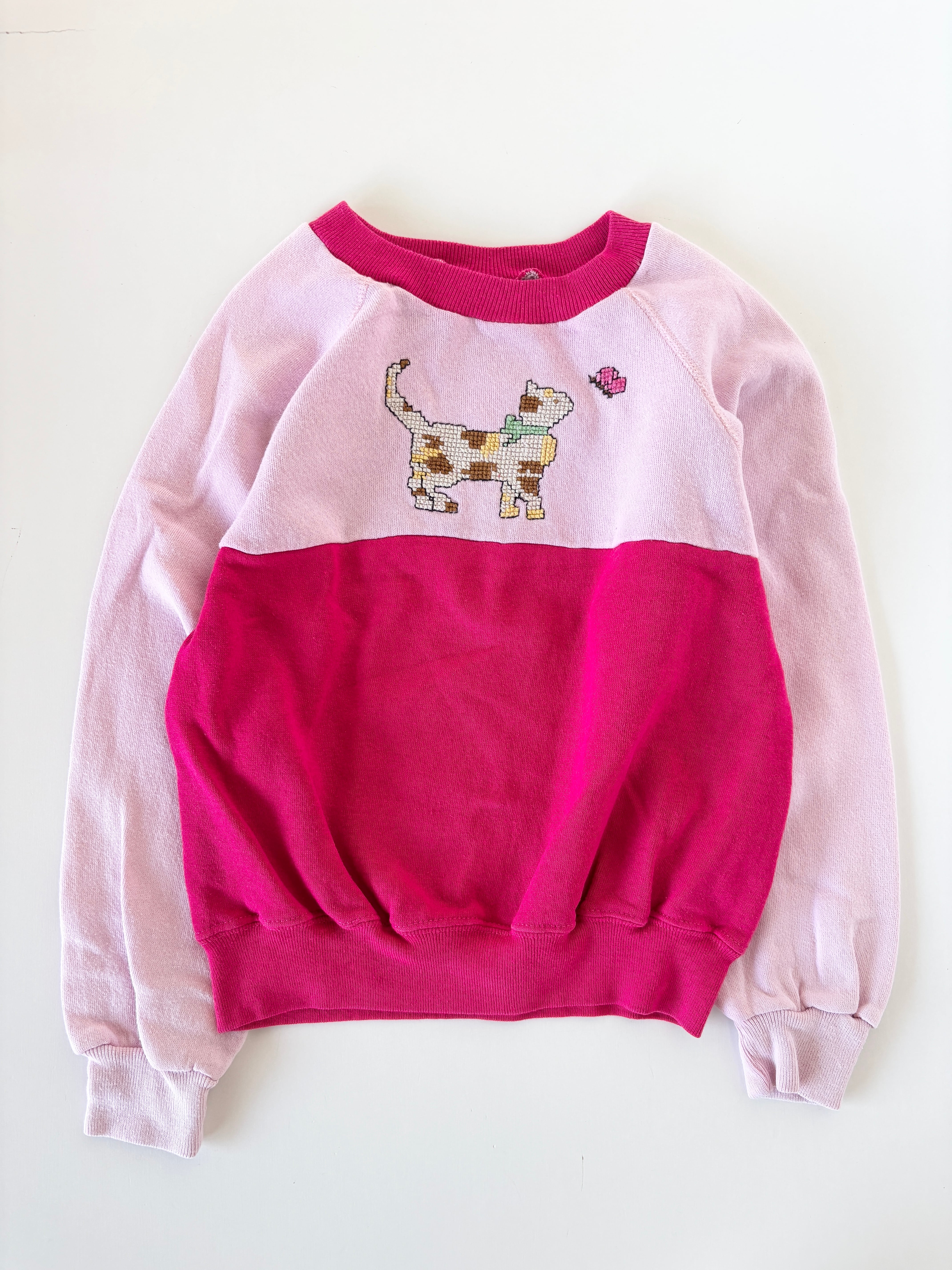 【6-8T・vintage】USA製 Cat刺繍スウェット