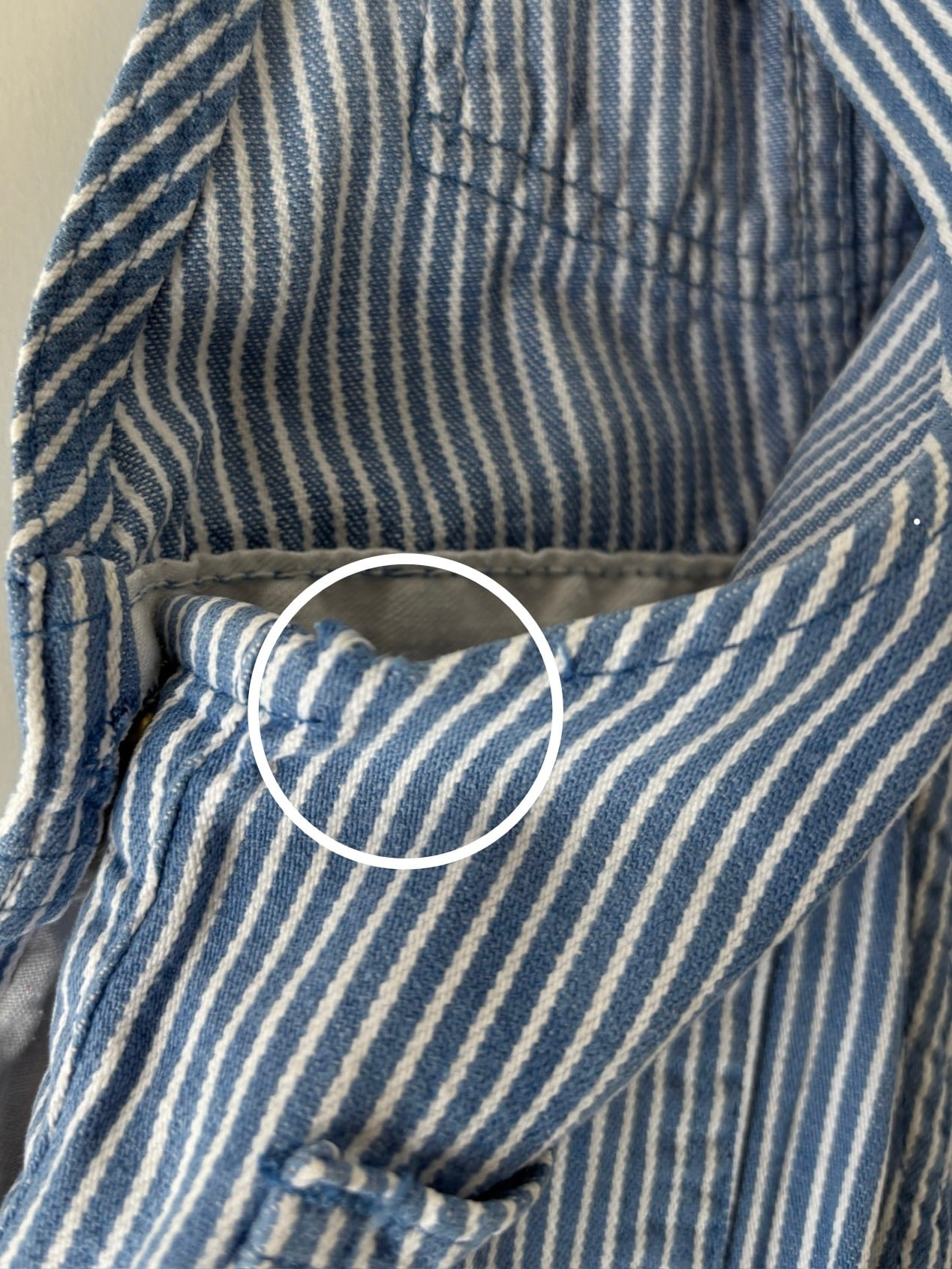 ・左サイドのボタン横の生地がほつれている。