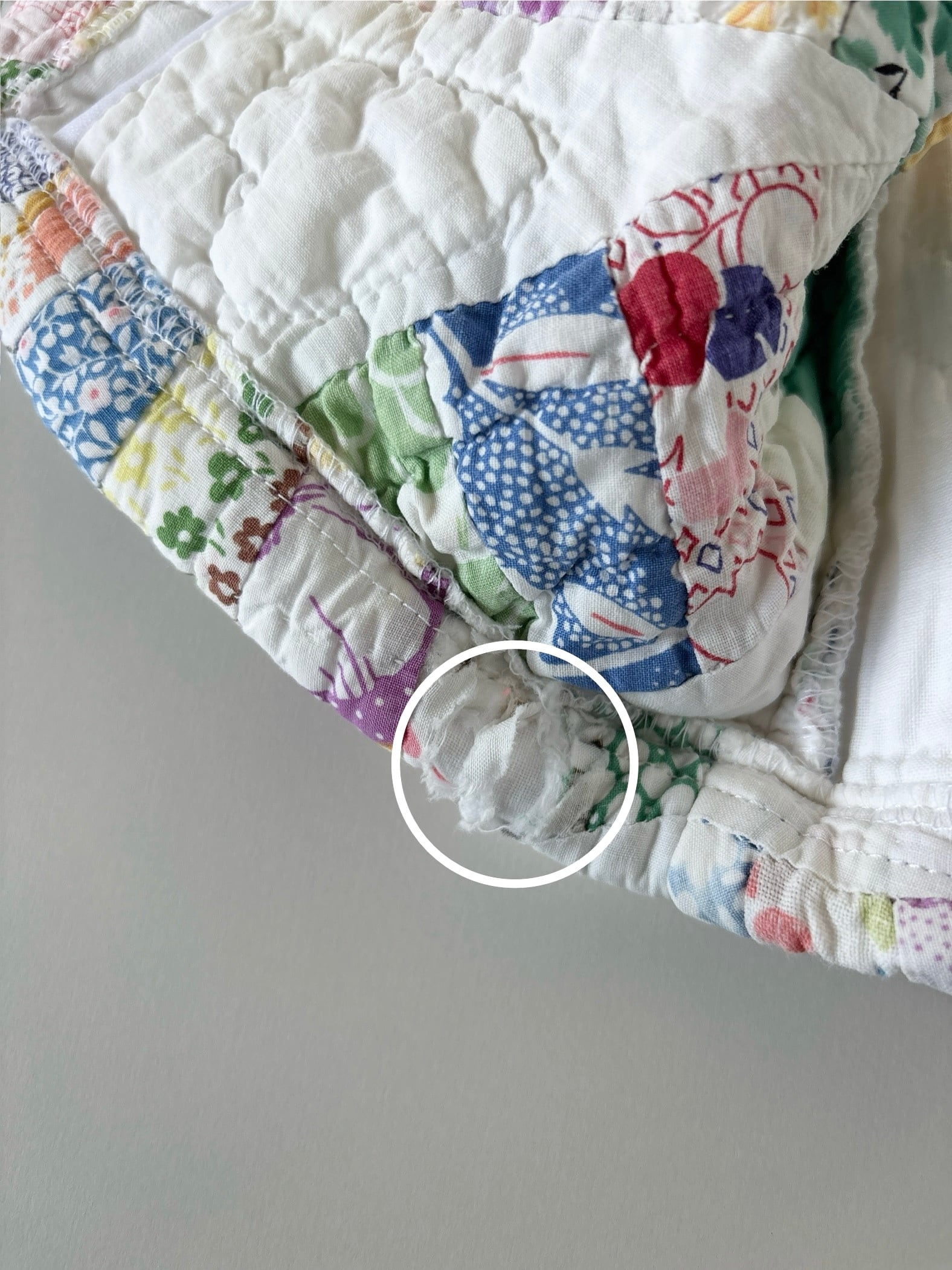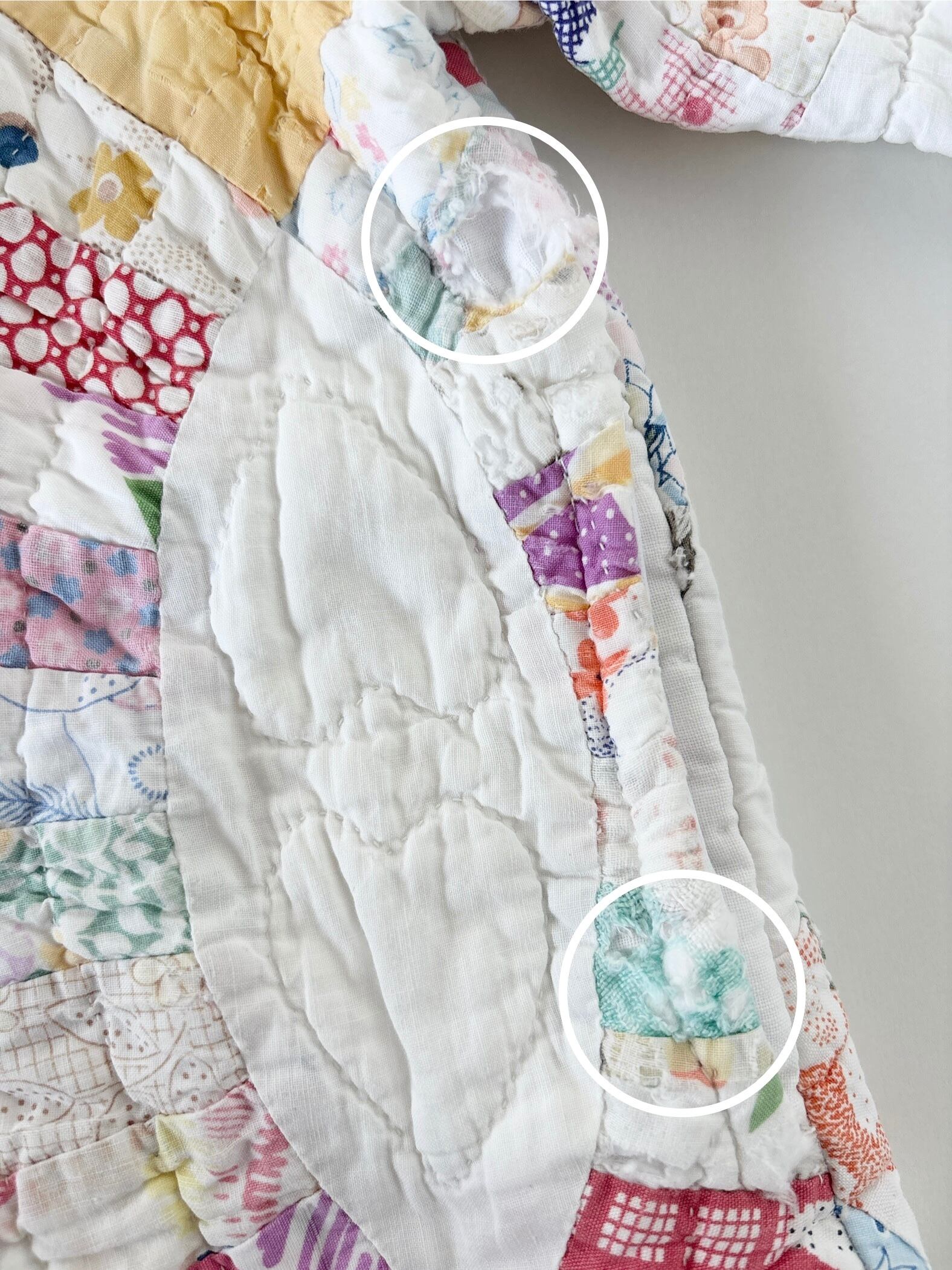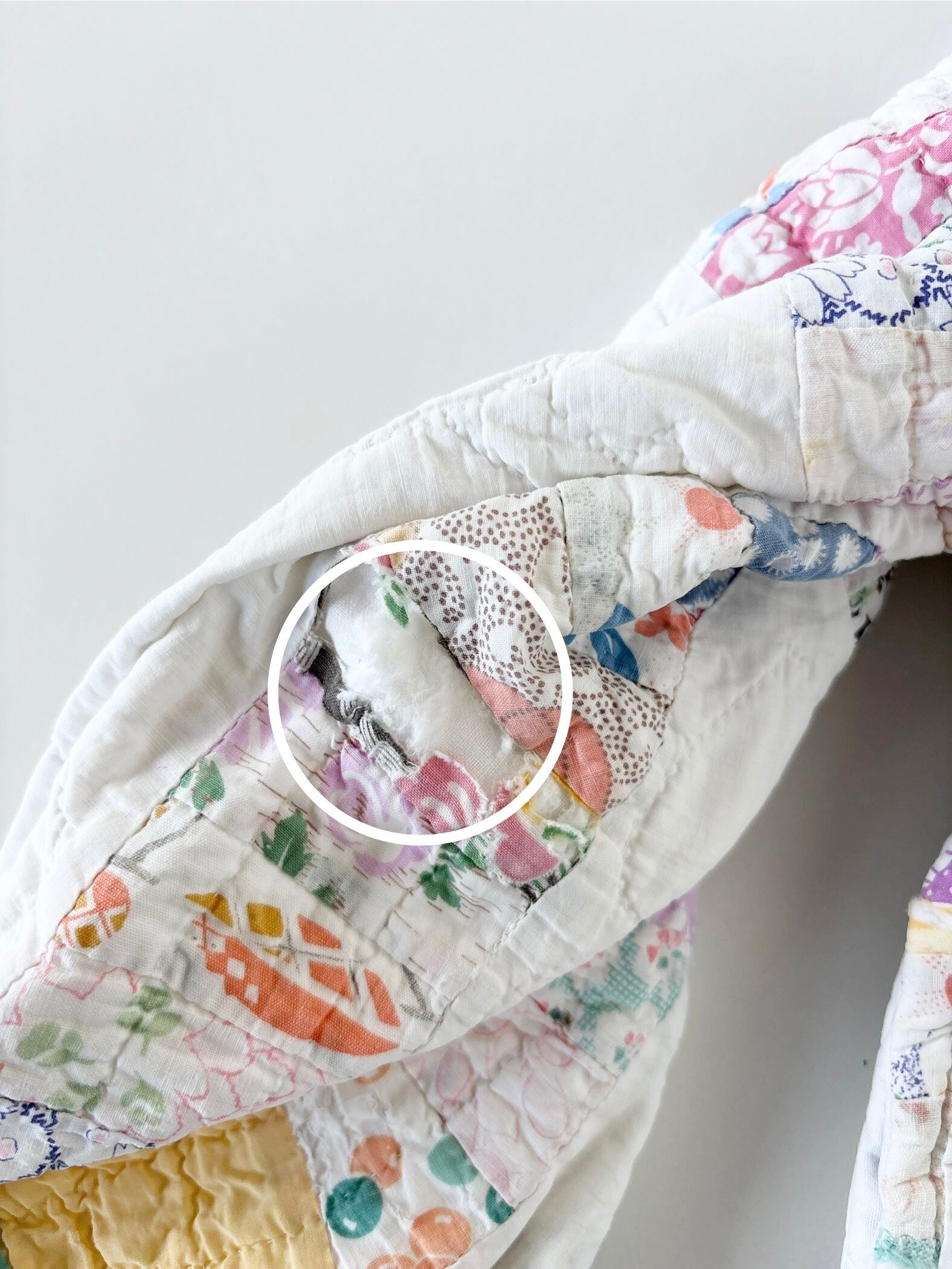 パッチワーク部分の破れが数カ所あります。