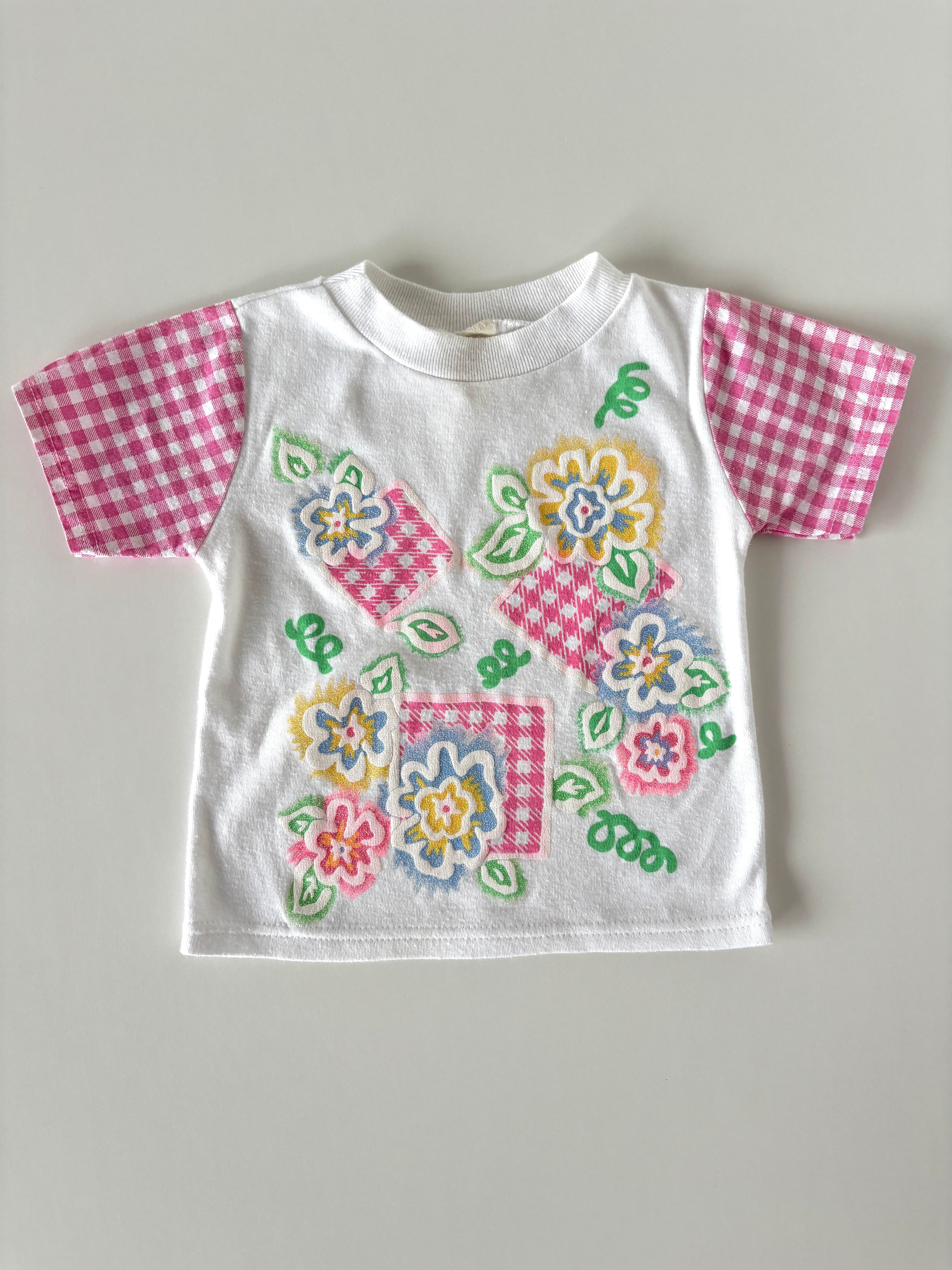 【18-24m相当・vintage】USA製 ギンガムチェック×フローラルtee