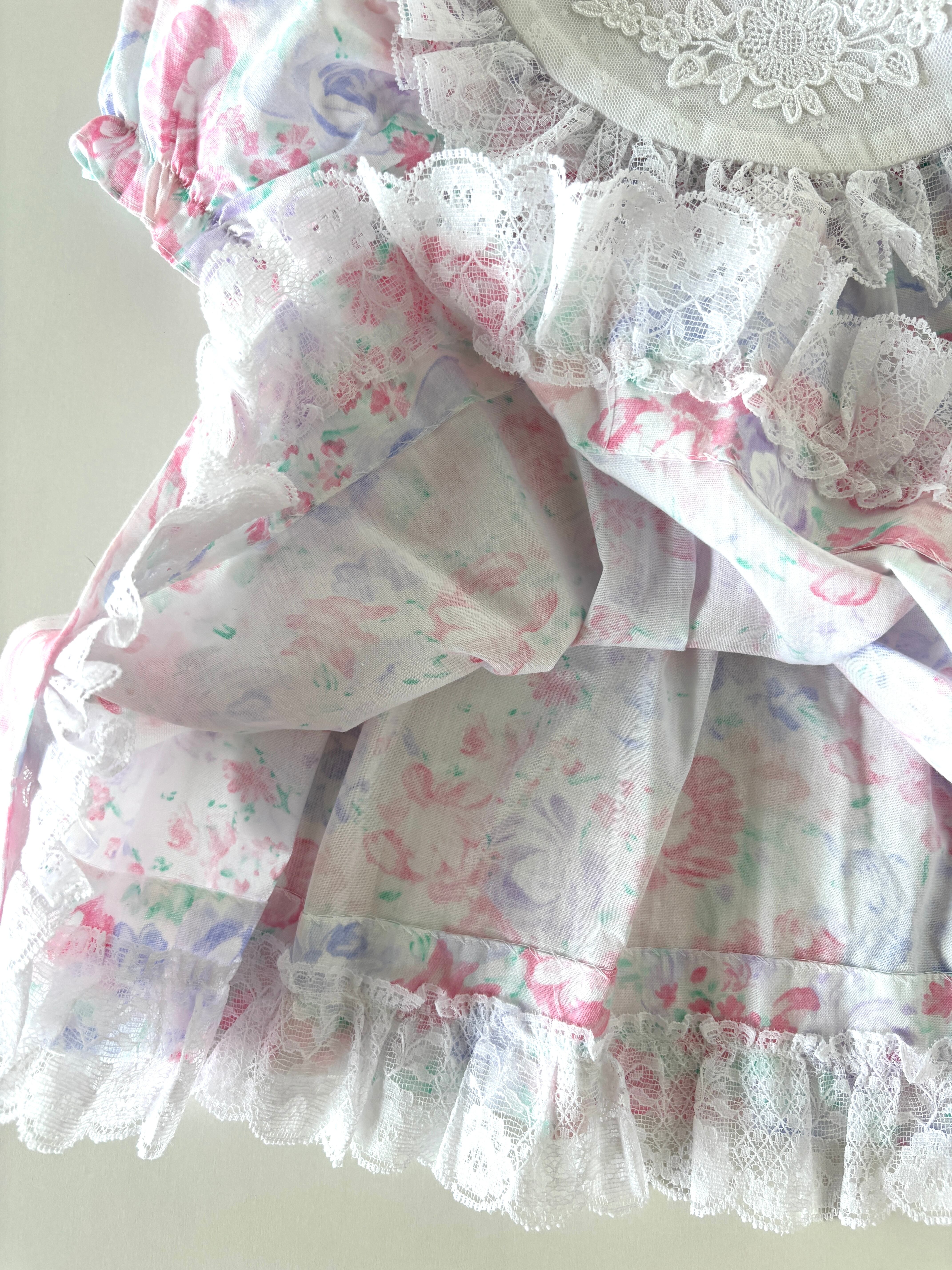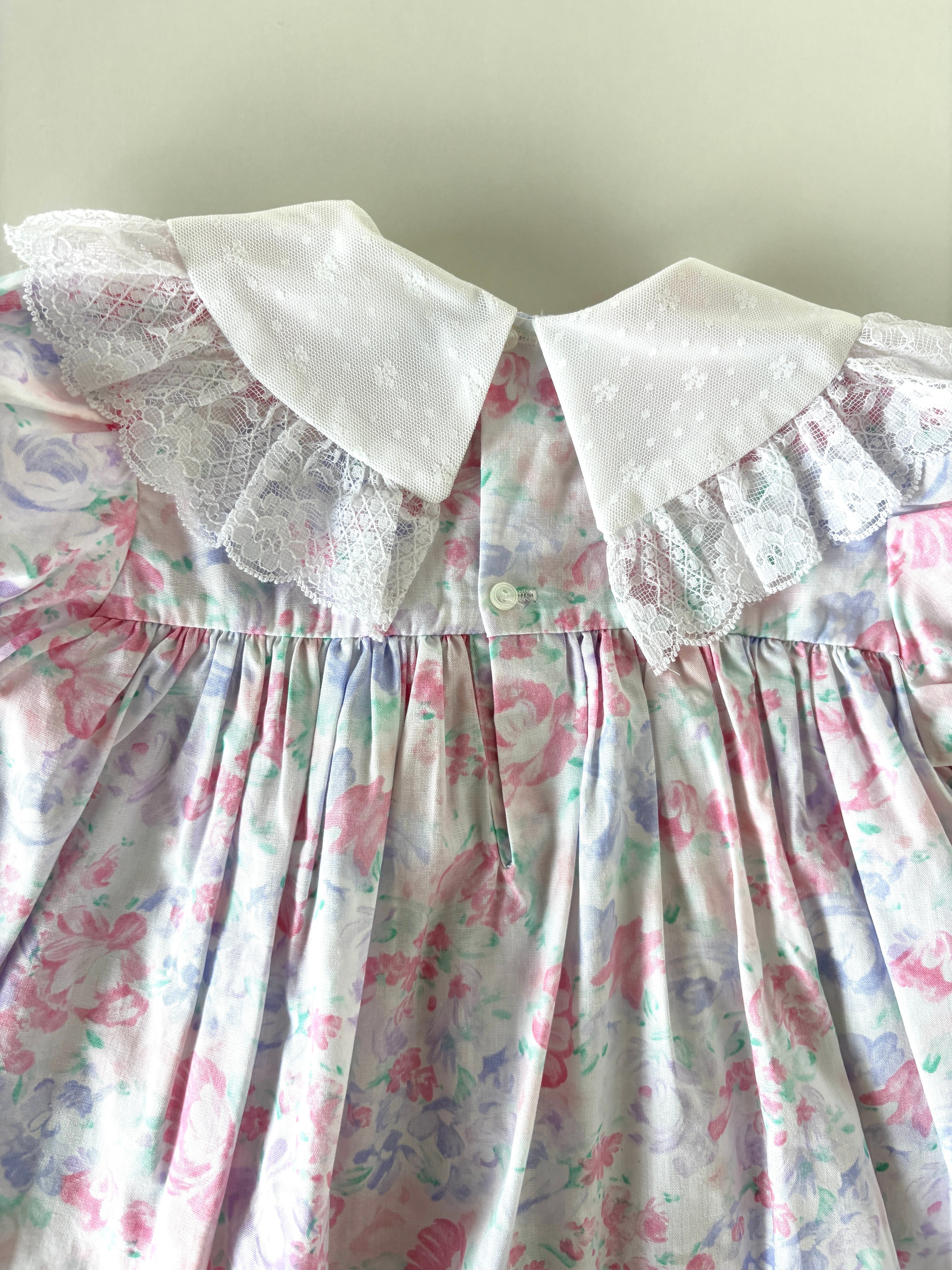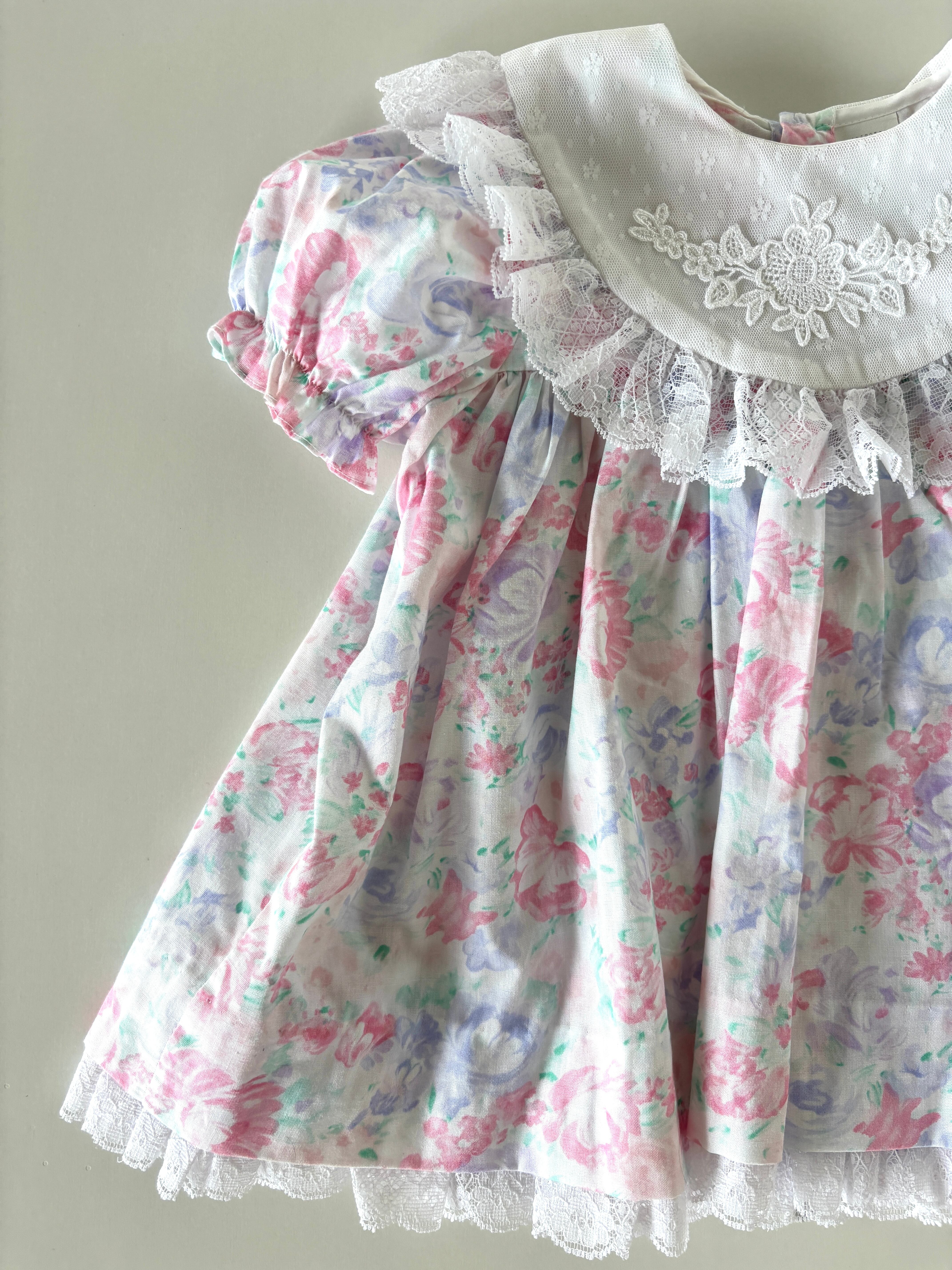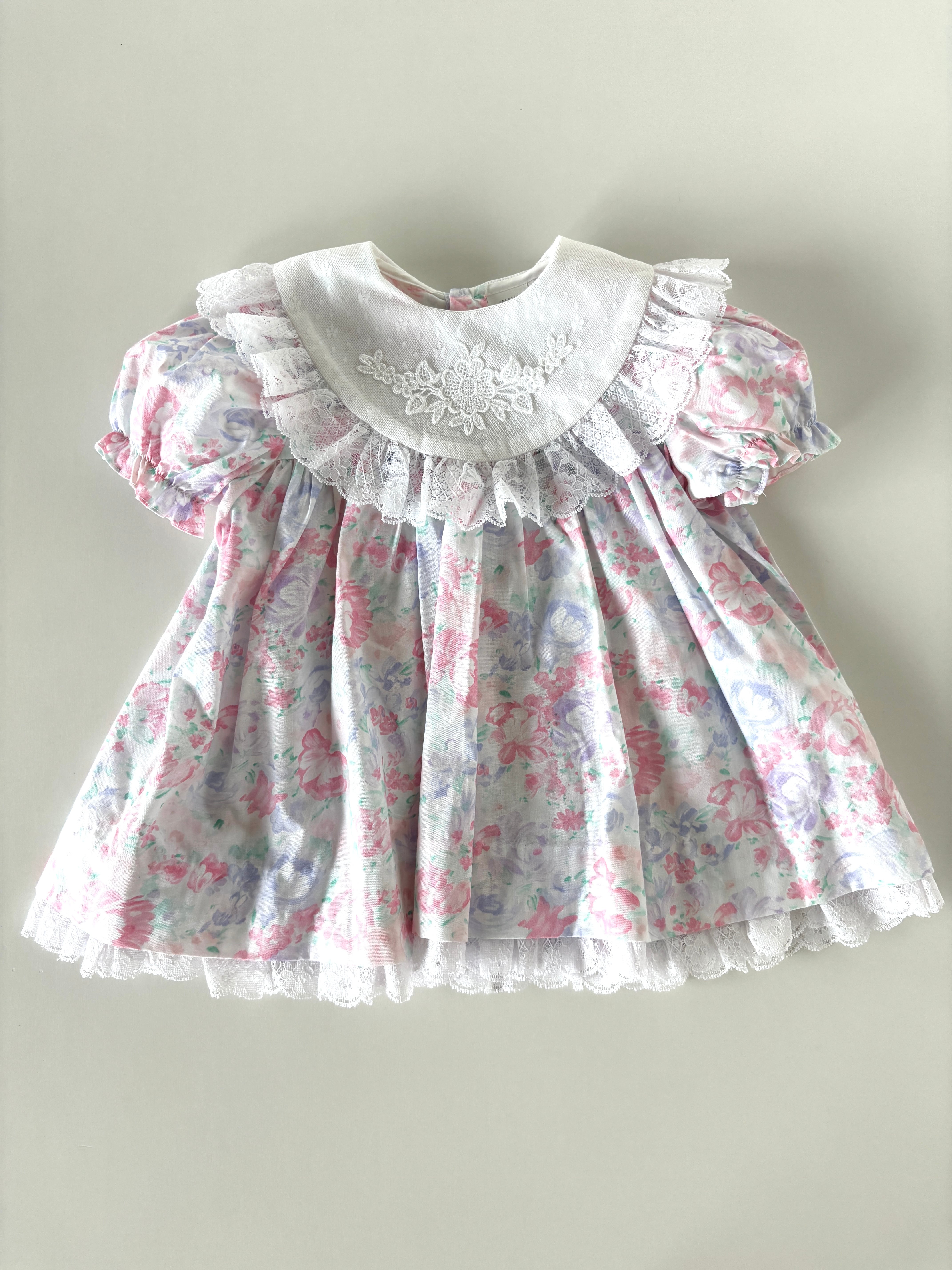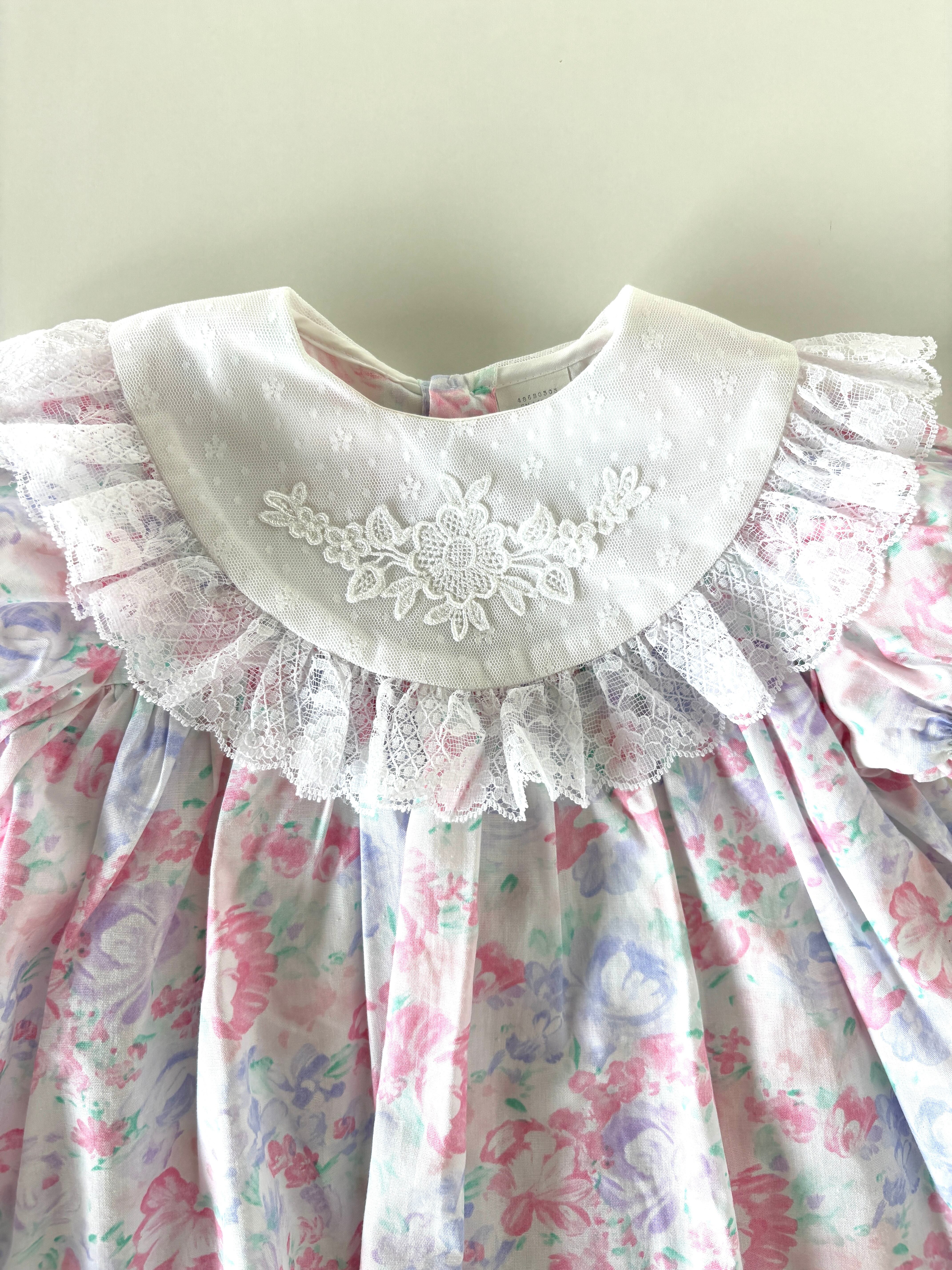 【9-12m相当・vintage】フローラル襟レースdress