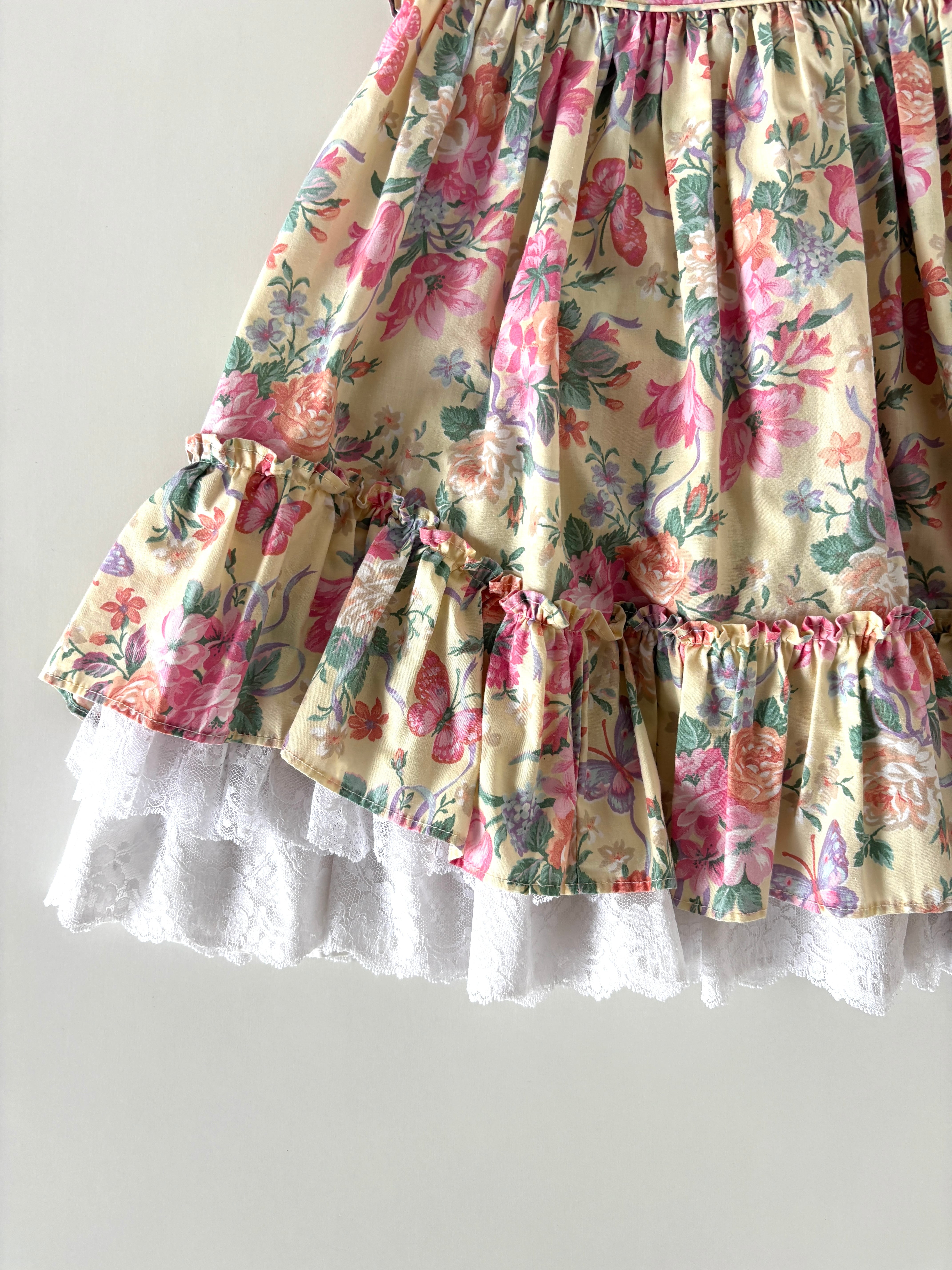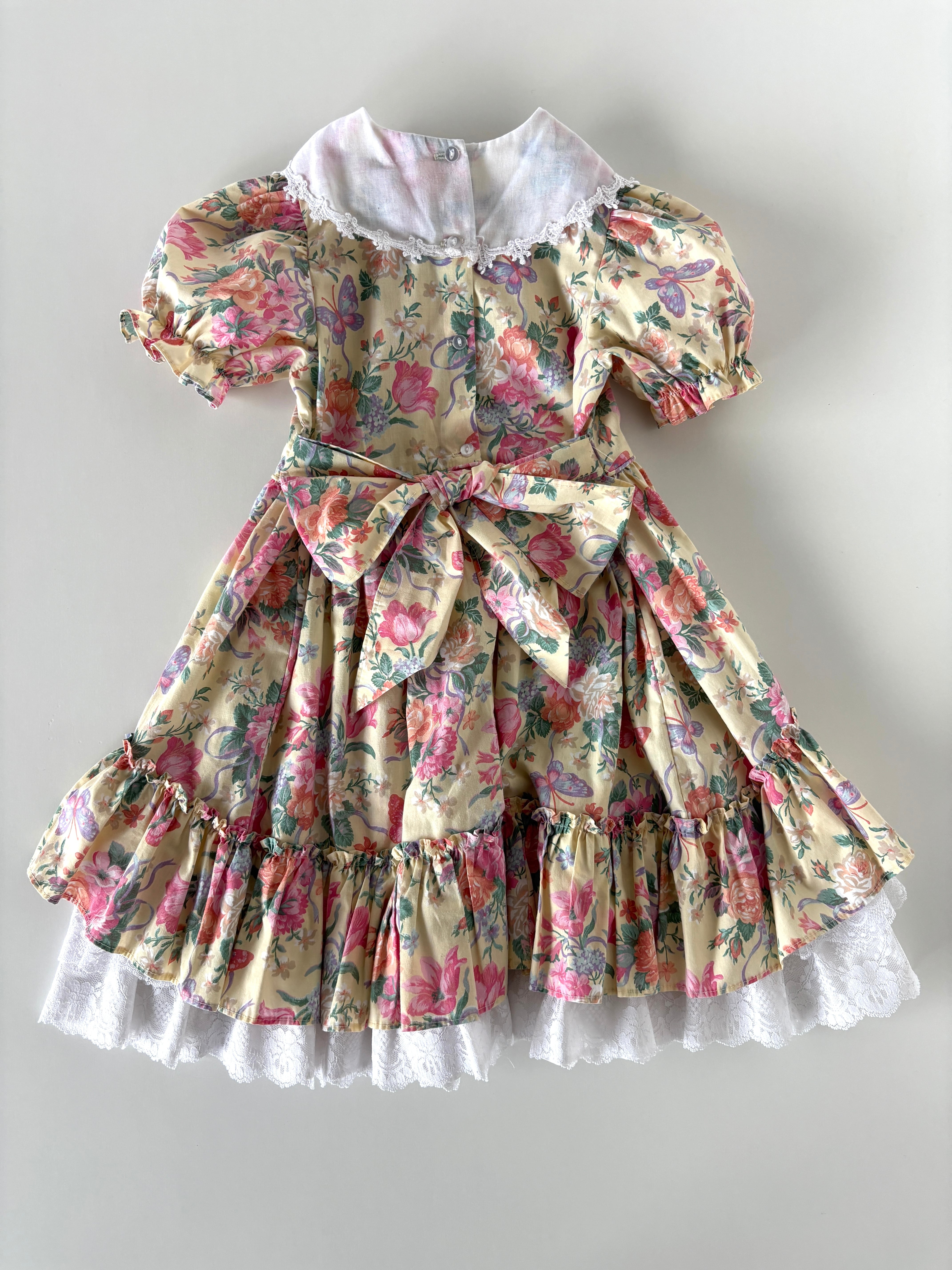 【4-5T相当・vintage】フローラルレースdress